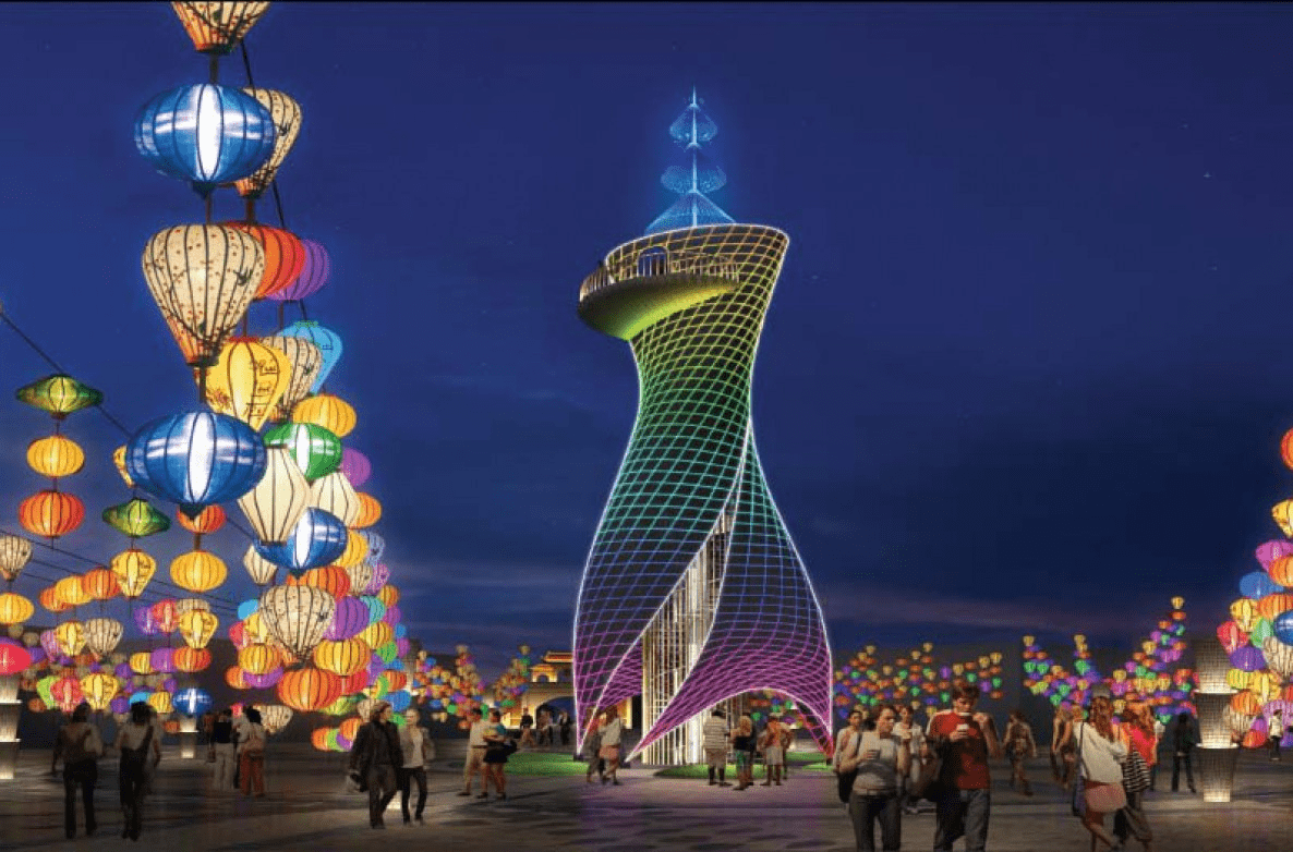 Đài vọng cảnh được thiết kế lấy cảm hứng từ tà áo dài Việt Nam thướt tha, một điểm nhấn tạo nên Ấn tượng Hội An trong lòng du khách quốc tế. Từ trên đỉnh tháp có thể bao quát toàn cảnh hòn đảo và một góc Hội An cổ kính, yên bình bên con sông Hoài hiền hòa lãng mạn.